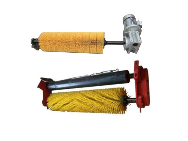 电动滚刷清扫器能有效的清扫滚筒表面和输送带底面粘附物,是一种保护性装置。由电动机驱动圆柱型尼龙刷,刷尖与带面轻微接触,尼龙刷的旋转方向与回程输送带的运行方向相反...